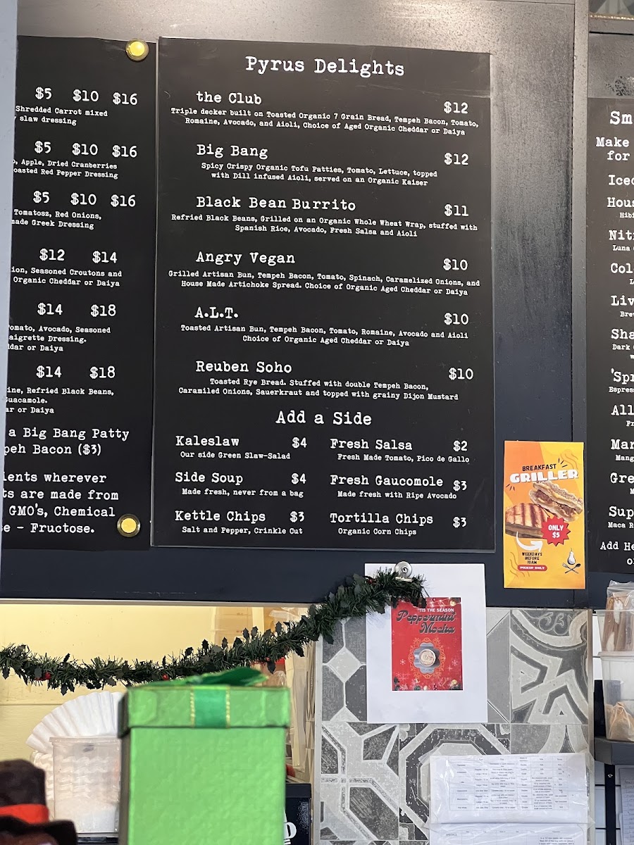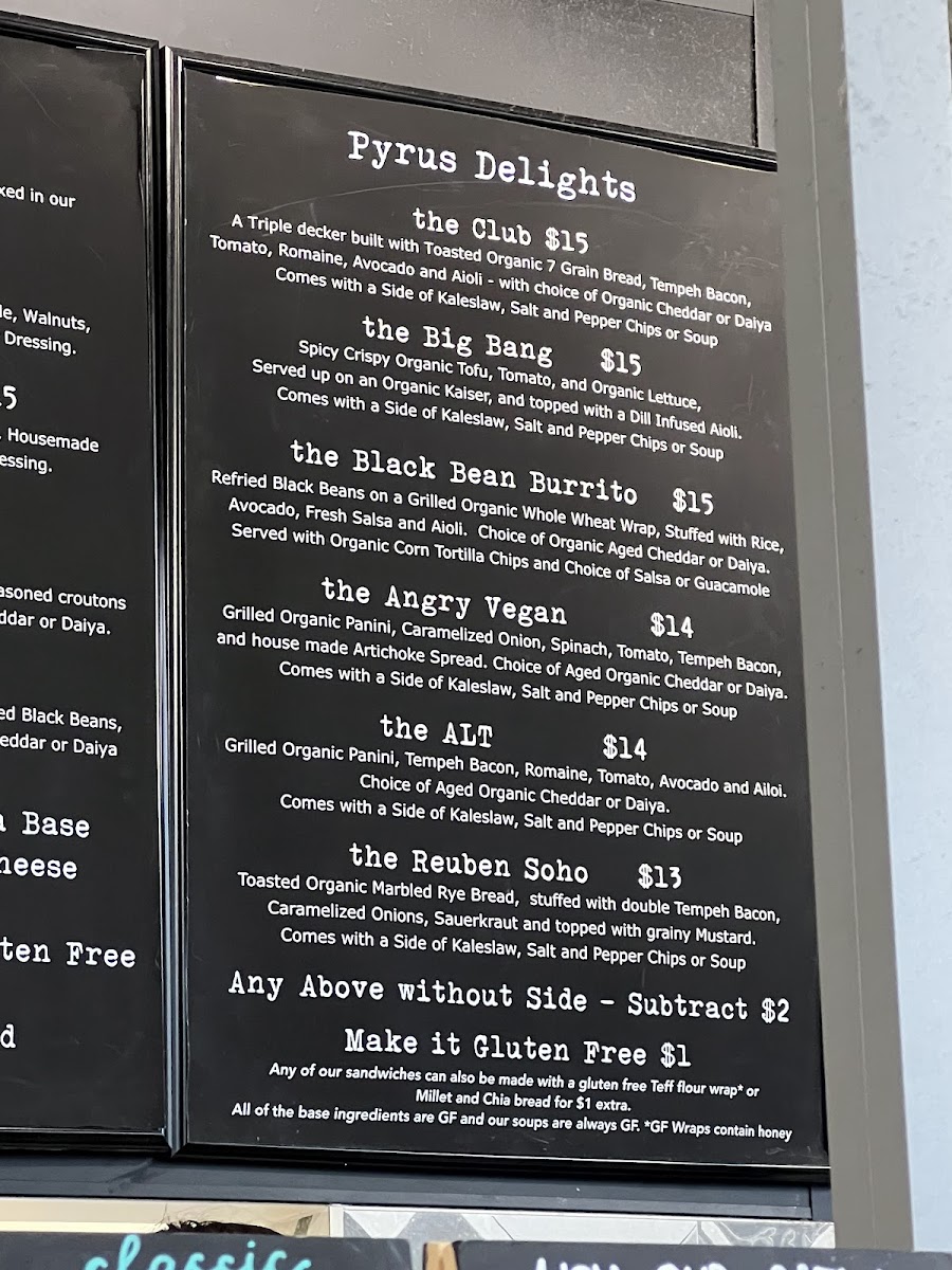 Cafe Pyrus prides itself on a comprehensive menu that is particularly friendly to vegetarians and vegans alike, making it a beloved gem in the local dining scene. The highlight of their offerings includes the creatively assembled Grilled Cheesmo and the hearty Chick Pea Melt, each one a culinary hug that delights the senses. For those chasing warmth, their Featured Stew at just CA$8.00 promises satisfying comfort, while the Soup Of The Day provides a rotation of flavors perfect for purists seeking rich, savory notes. If you’re in the mood for something on-the-go, the Johnny Bagel is an ideal choice, perfectly portable without sacrificing taste.